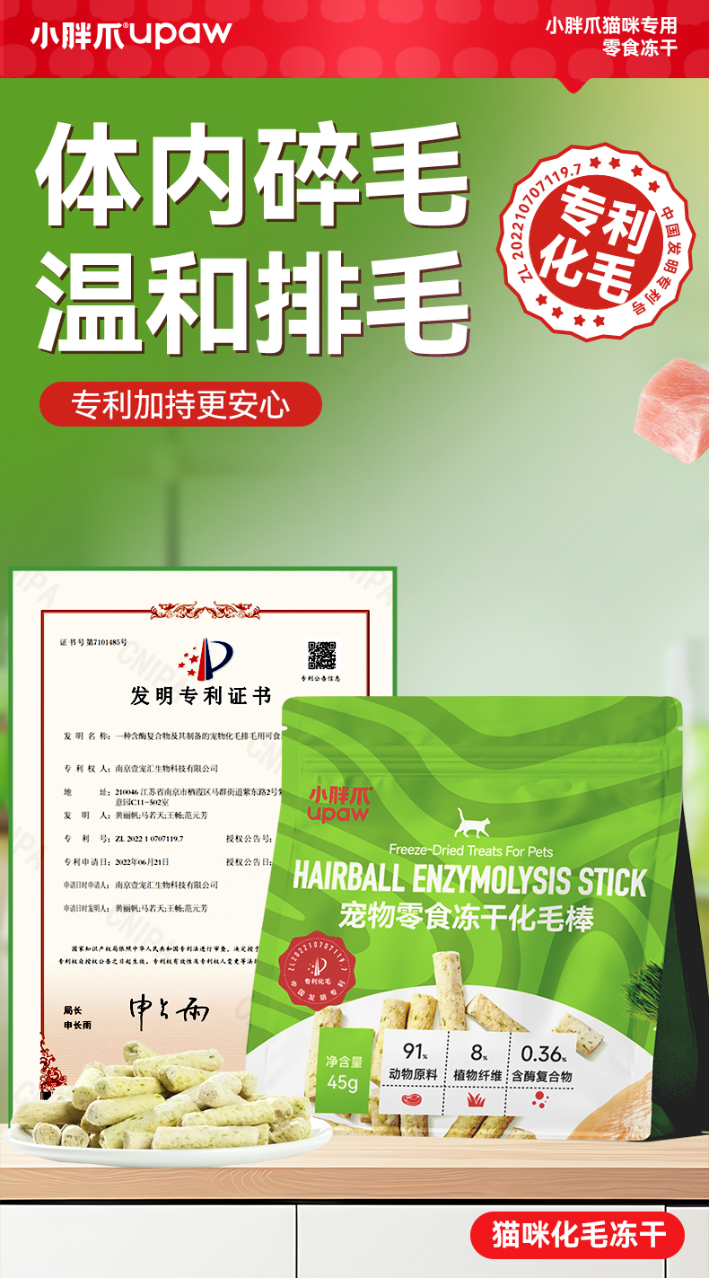 小胖爪 宠物零食-冻干化毛棒 45g*2袋