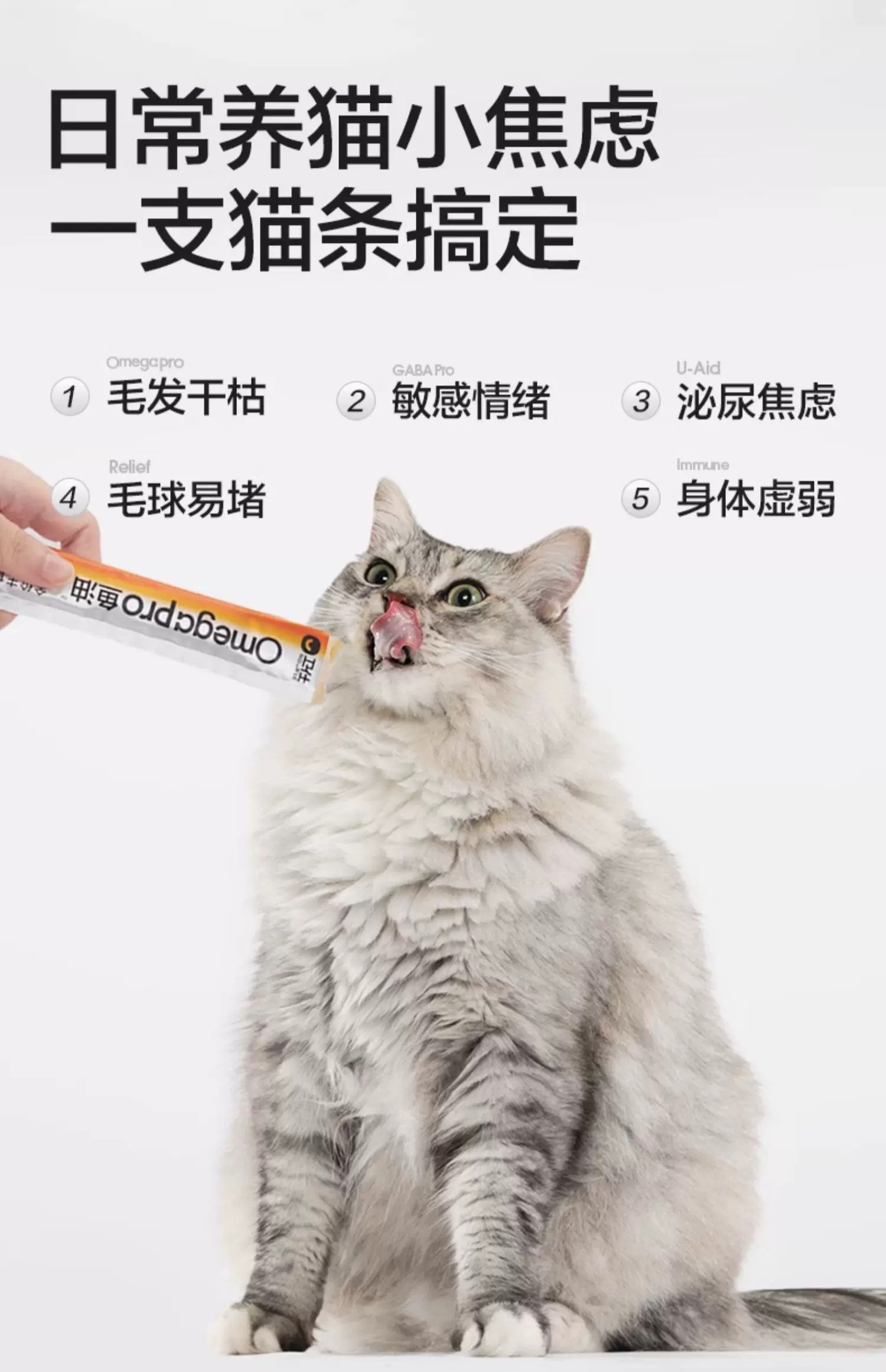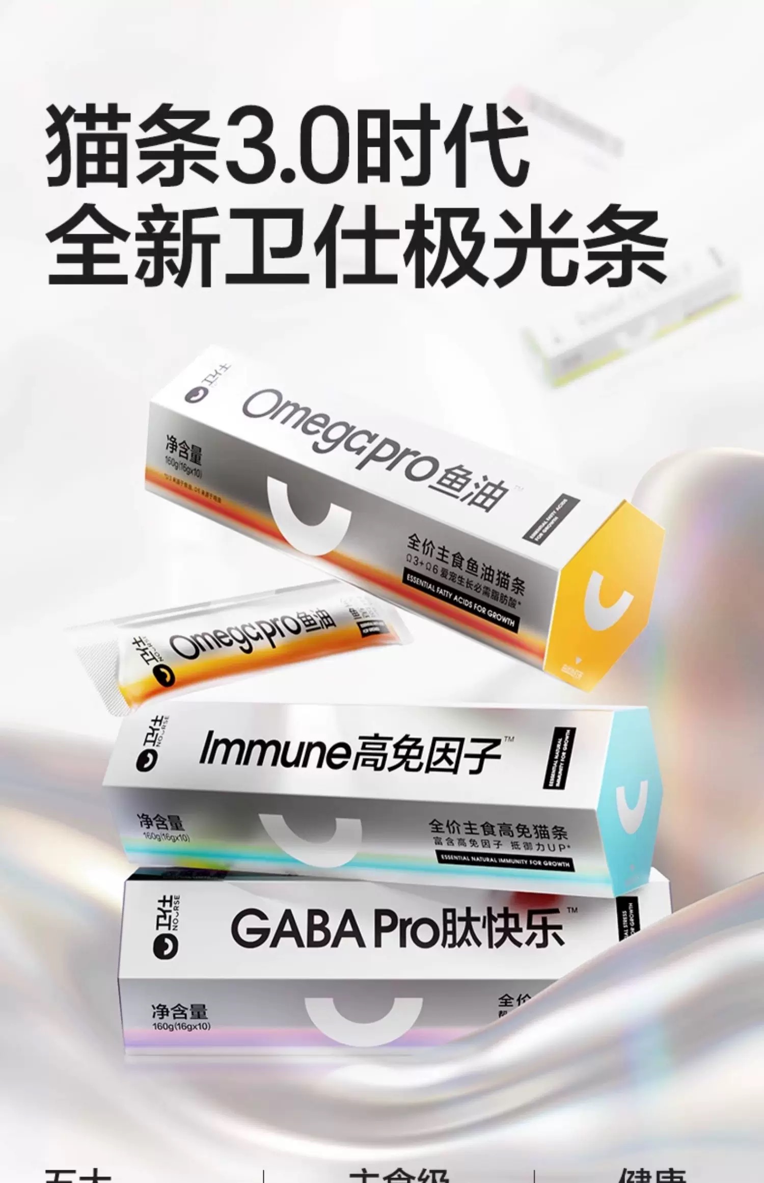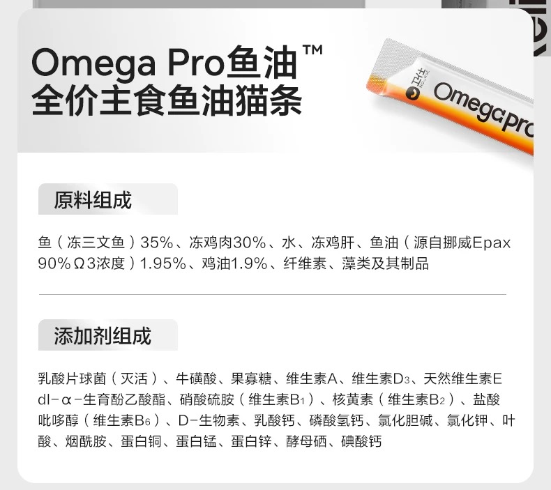 卫仕功能猫条宠物猫全价主食营养无添加化毛高免疫情绪鱼油猫条 160g