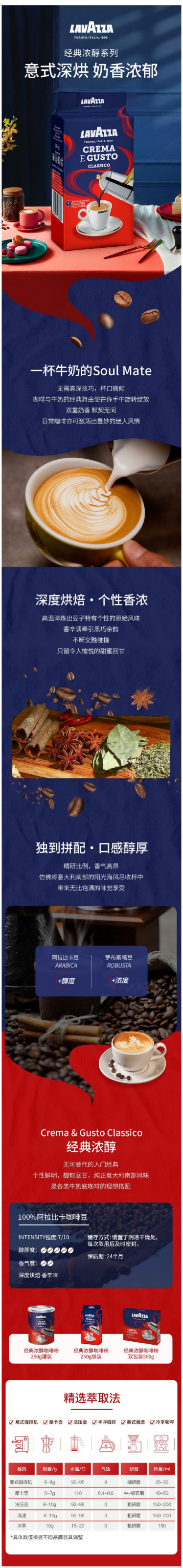 拉瓦萨LAVAZZA 意大利原装进口经典浓醇咖啡粉 双包装500g